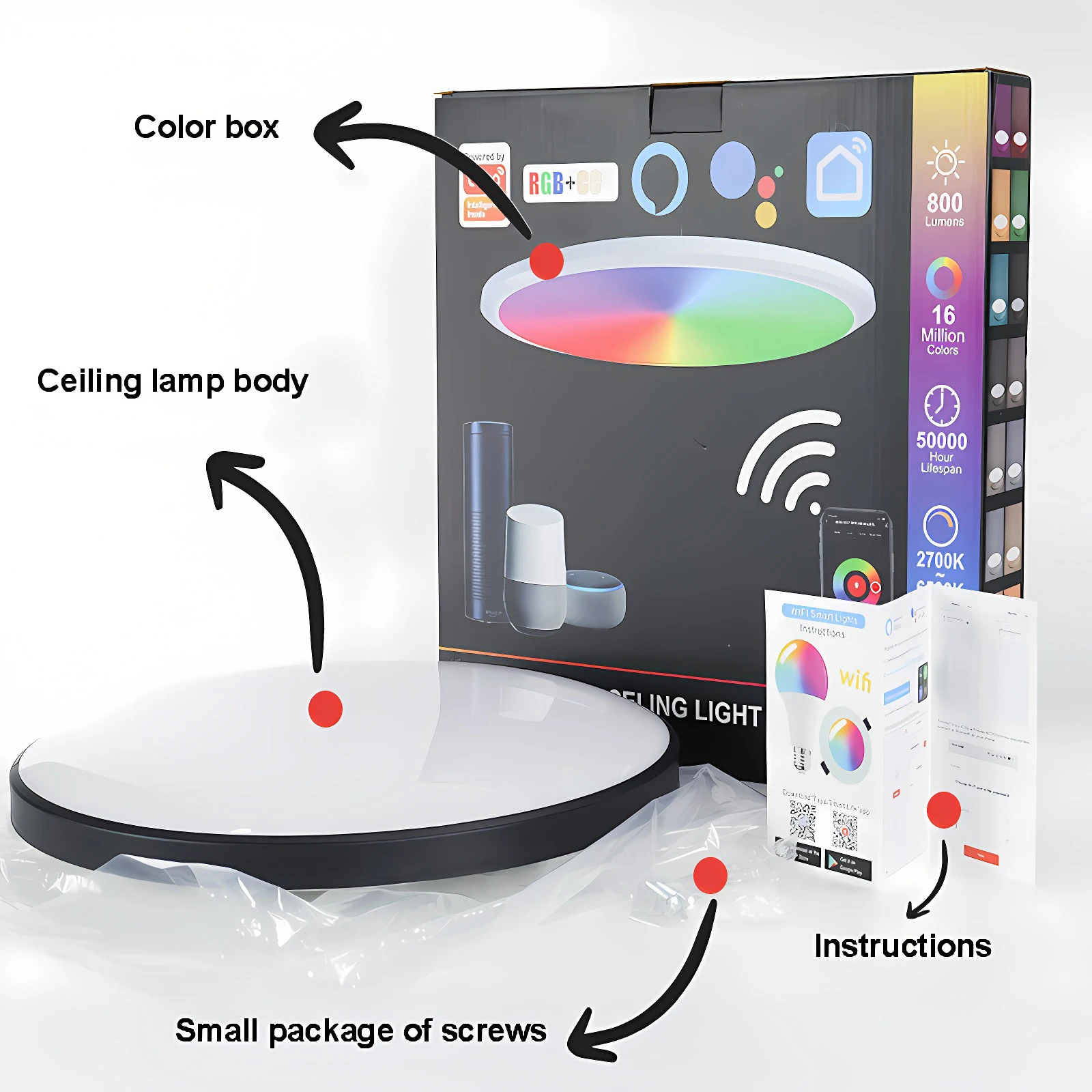 Intelligent APP control; RGB operation effect; 3000-6500K Color Temperature Adjustable;Brightness adjustable from 1% to 100%.